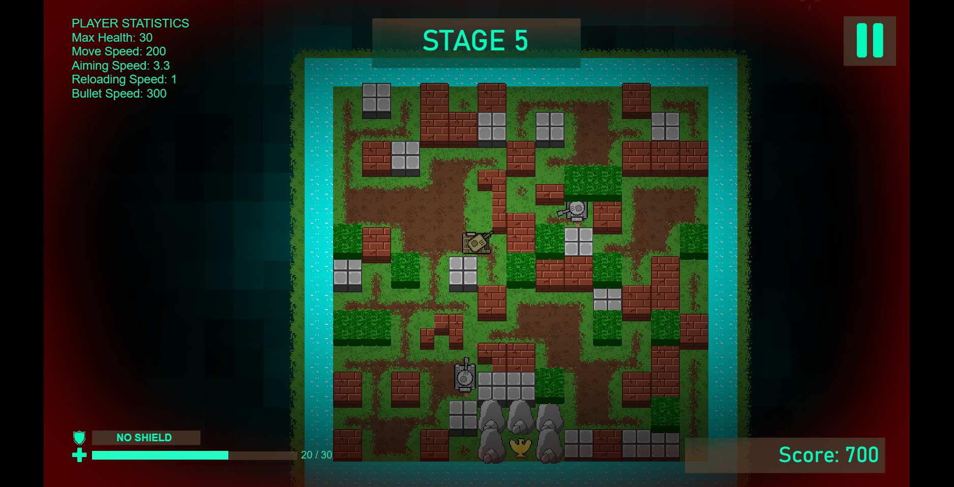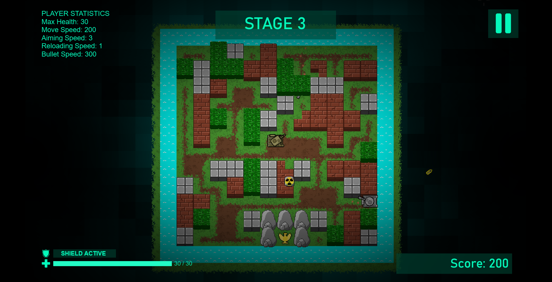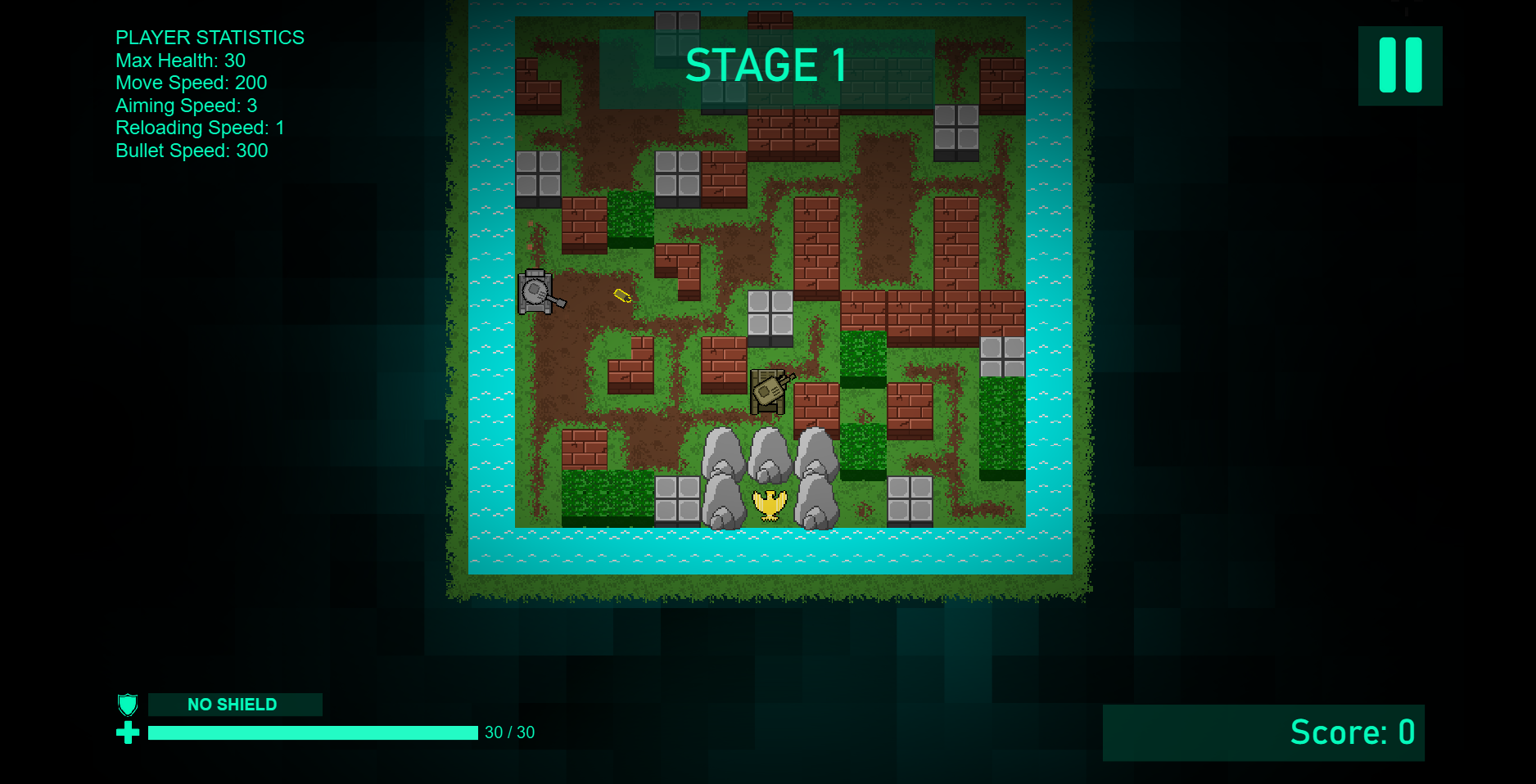 Based on old 1985 NES game "Battle City" now modernized with some twist such as cleaner art style, procedurally generated maps, free aiming control, upgrade system, and permadeath. Packed in a quick few minutes arcade styled gameplay for each level.