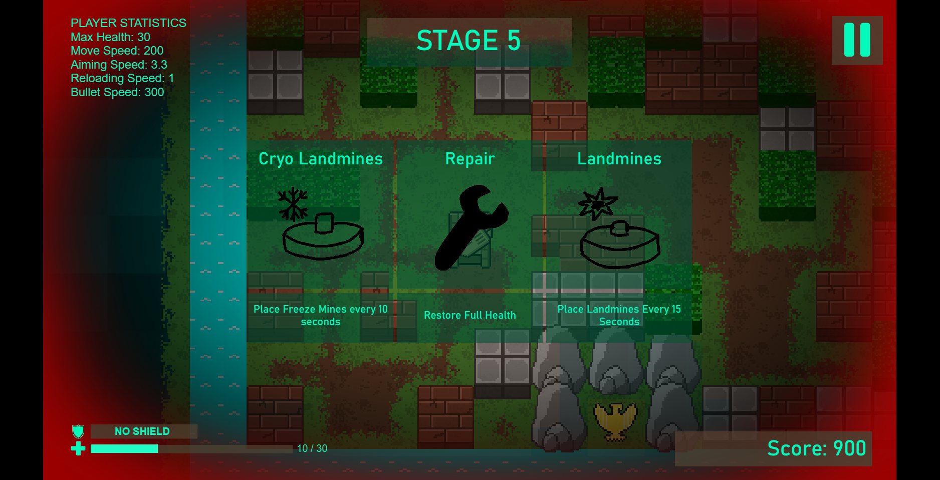 - Bricks and stone are destroyable, but metal block isn’t